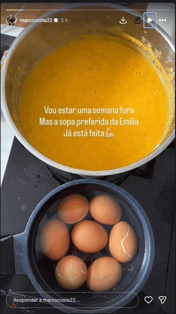 Esta segunda-feira, dia 16, Marco Costa voltou às redes sociais para partilhar um momento simples, mas significativo. O empresário publicou uma fotografia de uma panela de sopa, revelando que esteve a cozinhar para a filha antes de se ausentar. “Vou estar uma semana fora, mas a sopa preferida da Emília já está feita”, escreveu, mostrando que, apesar da distância temporária, mantém o foco na filha.